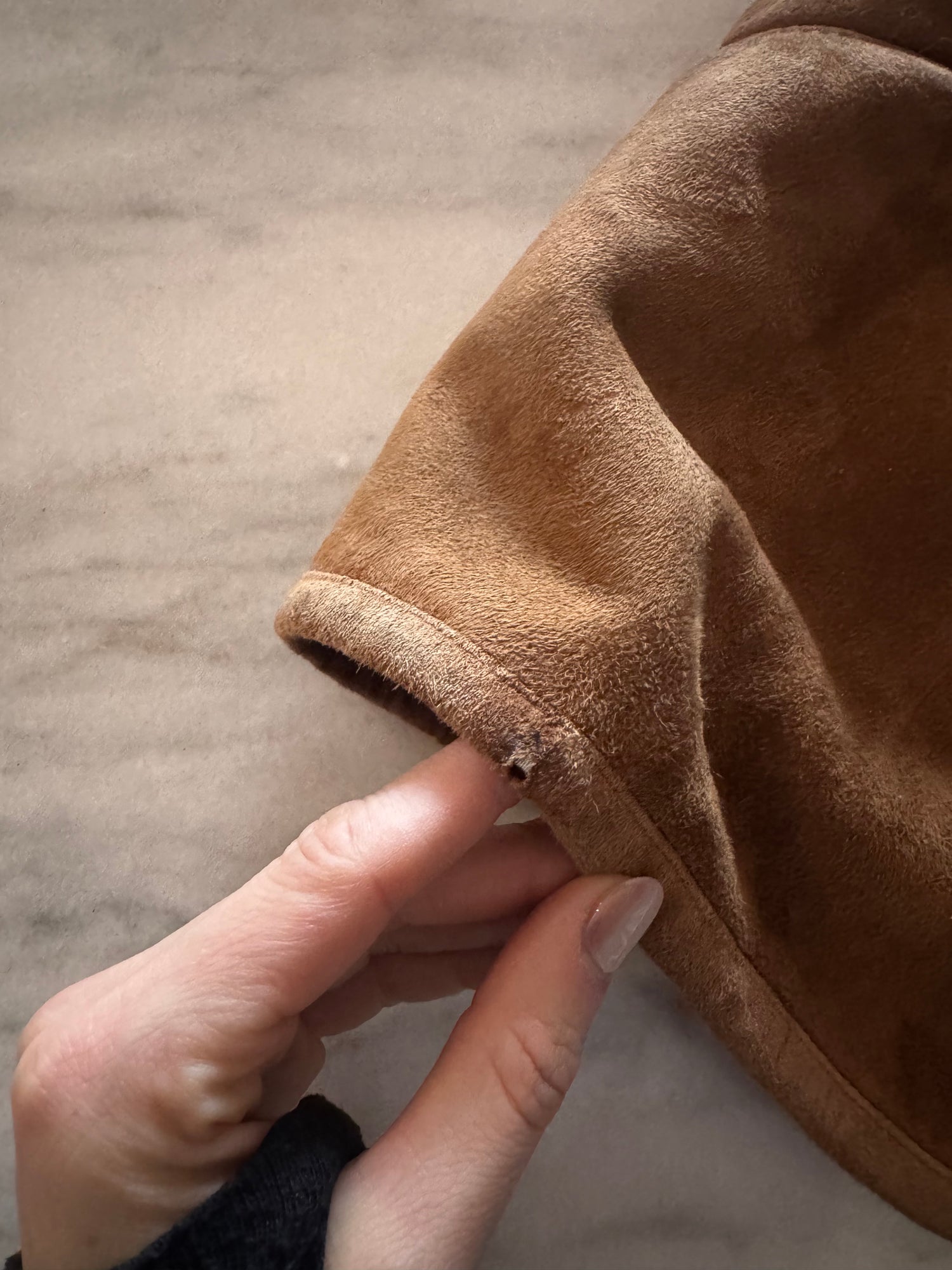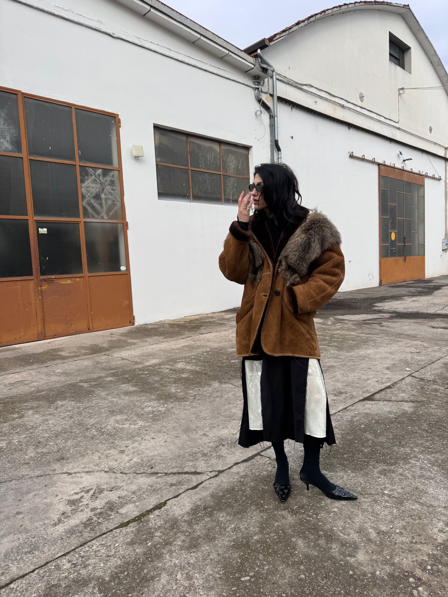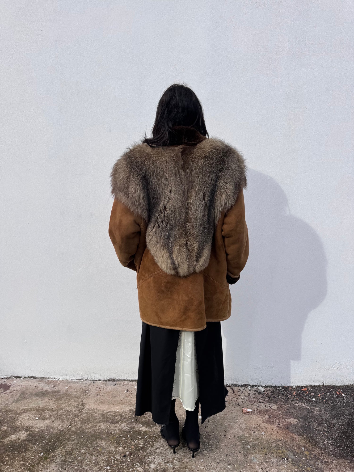 Shearling bellissimo con dettaglio in pelliccia sul davanti e sul lato posteriore.
